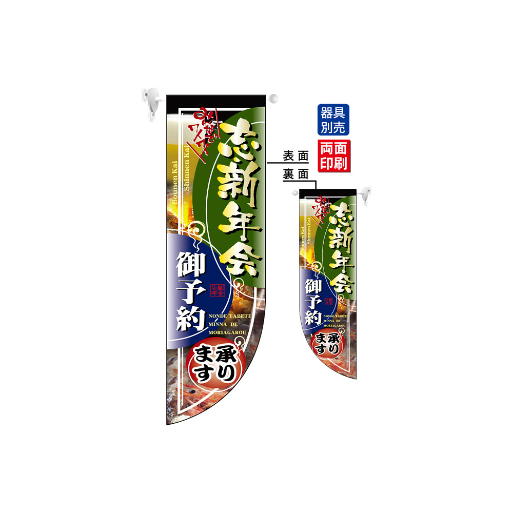 商品説明:忘新年会 ご予約承ります フラッグ(遮光・両面印刷) (6031)