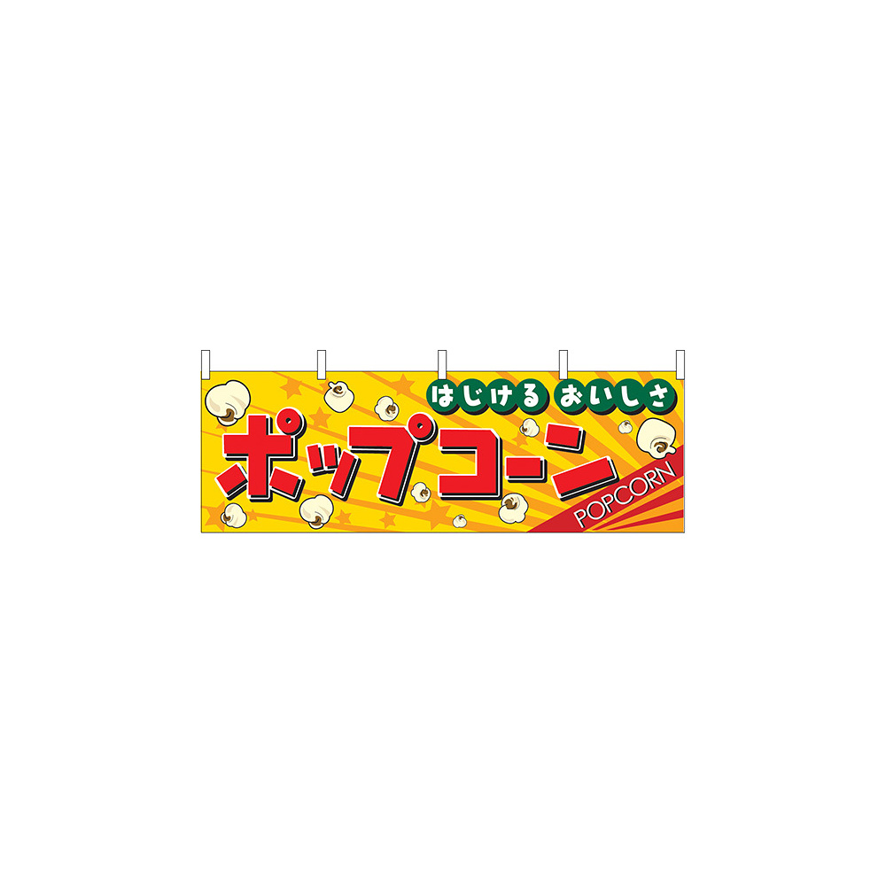 商品説明:ポップコーン はじけるおいしさ 屋台のれん(販促横幕) W1800×H600mm (2865)