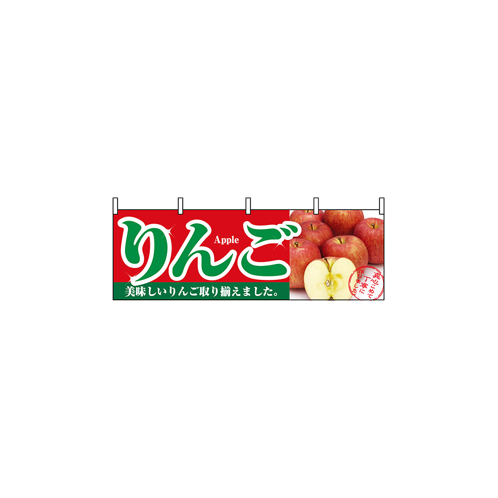 「りんご 販促横幕 W1800×H600mm (1385)」の導入をご検討中ですか? 大量注文・複数台のご検討に応じたお見積りのご相談、最短納期や送料、仕様・サイズの確認など、 果物・野菜コーナー用横断幕選びをまとめてサポートいたします。