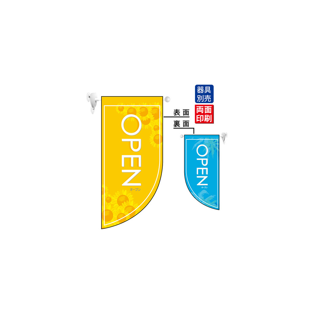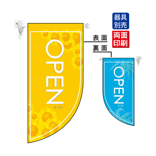 OPEN夏 (表面オレンジ 裏面ブルー) Rフラッグ ミニ(遮光・両面印刷) (4011)