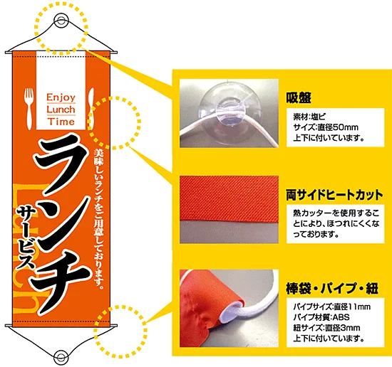 - 期間限定商品や、お店の一押しメニューの販促を打ちたい方への訴求効果の高いタペストリーです !!