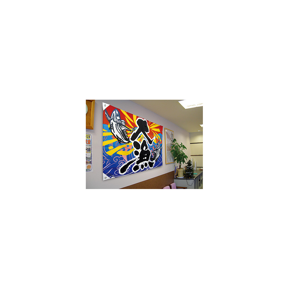 - 大胆な色使いとインパクトの有る大漁旗のデザインは注目度はもちろん、お店に活気をもたらせます。