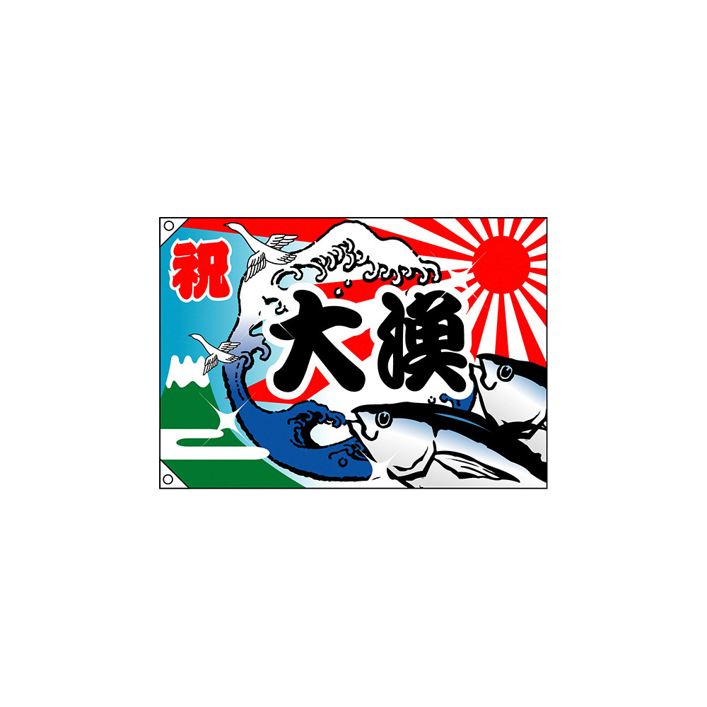 祝・大漁 (魚・波) 大漁旗 幅1.3m×高さ90cm ポンジ製 (4473)