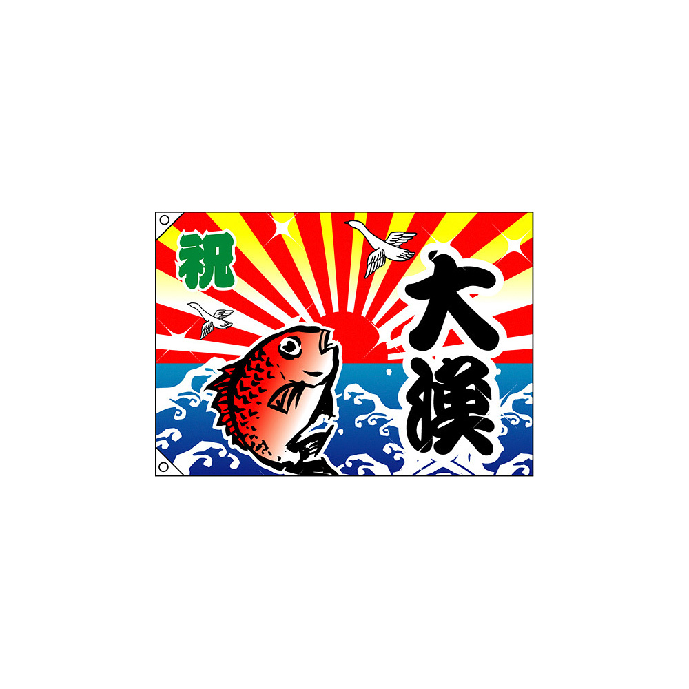 縁起の良い大漁旗は、お店のインテリアとしても注目度バツグン!デザイン内容「祝・大漁 (鯛) 大漁旗 」