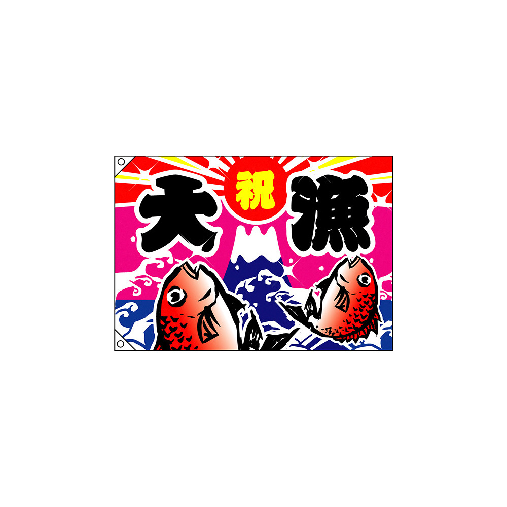 縁起の良い大漁旗は、お店のインテリアとしても注目度バツグン!デザイン内容「祝・大漁 (鯛2匹) 大漁旗 」