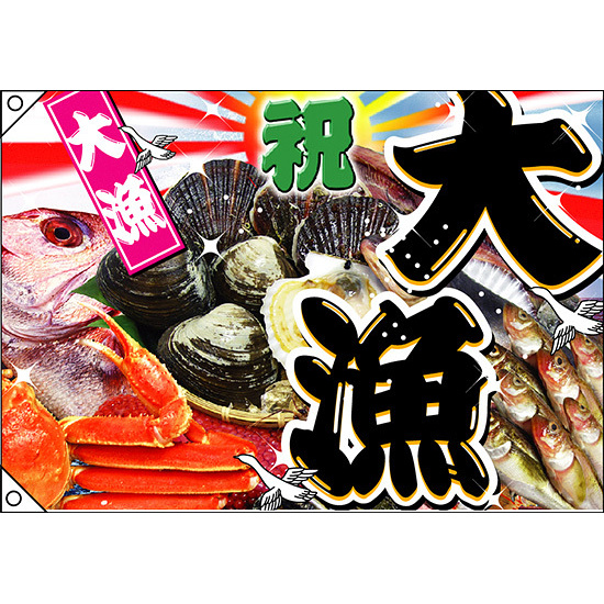 商品説明:祝・大漁 (写真) 大漁旗 幅1m×高さ70cm ポンジ製 (3558)