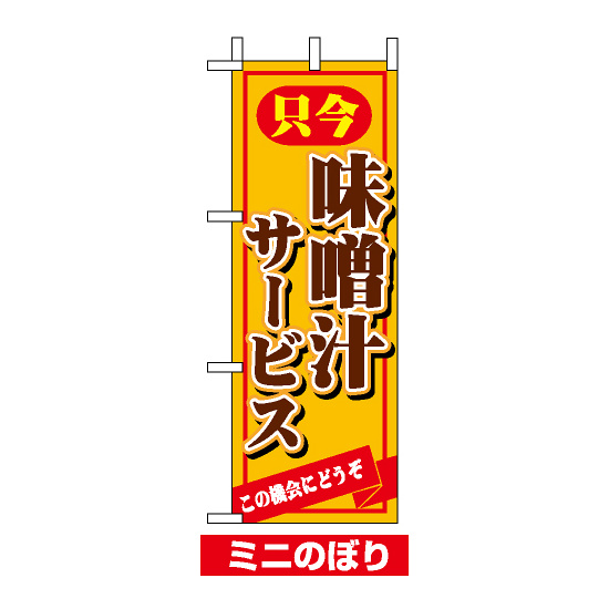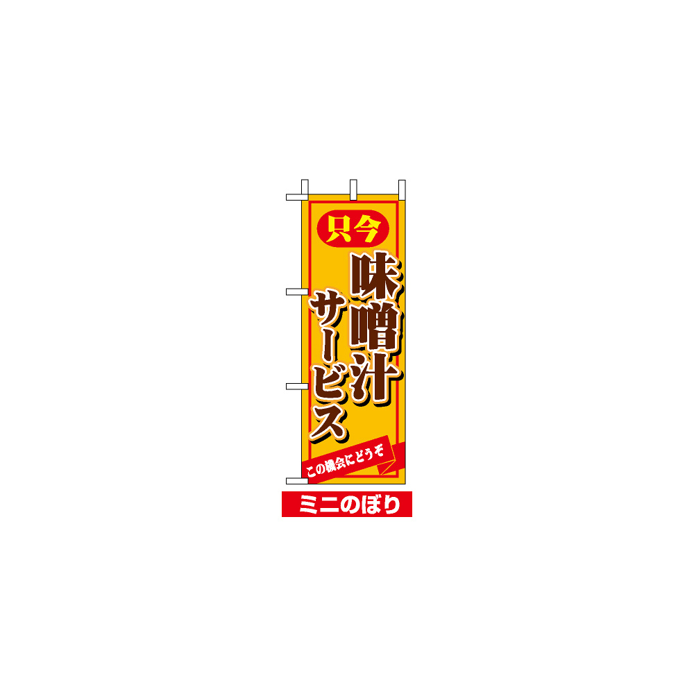 ミニのぼり旗 (9385) W100×H280mm 只今味噌汁サービスをご検討のお客様に。
