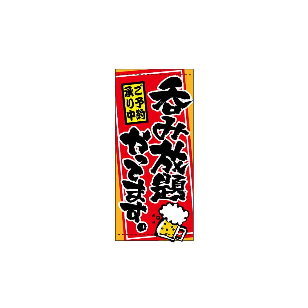 商品説明:フルカラー店頭幕 (3512) 呑み放題やってます。 ご予約承り中 (ポンジ)