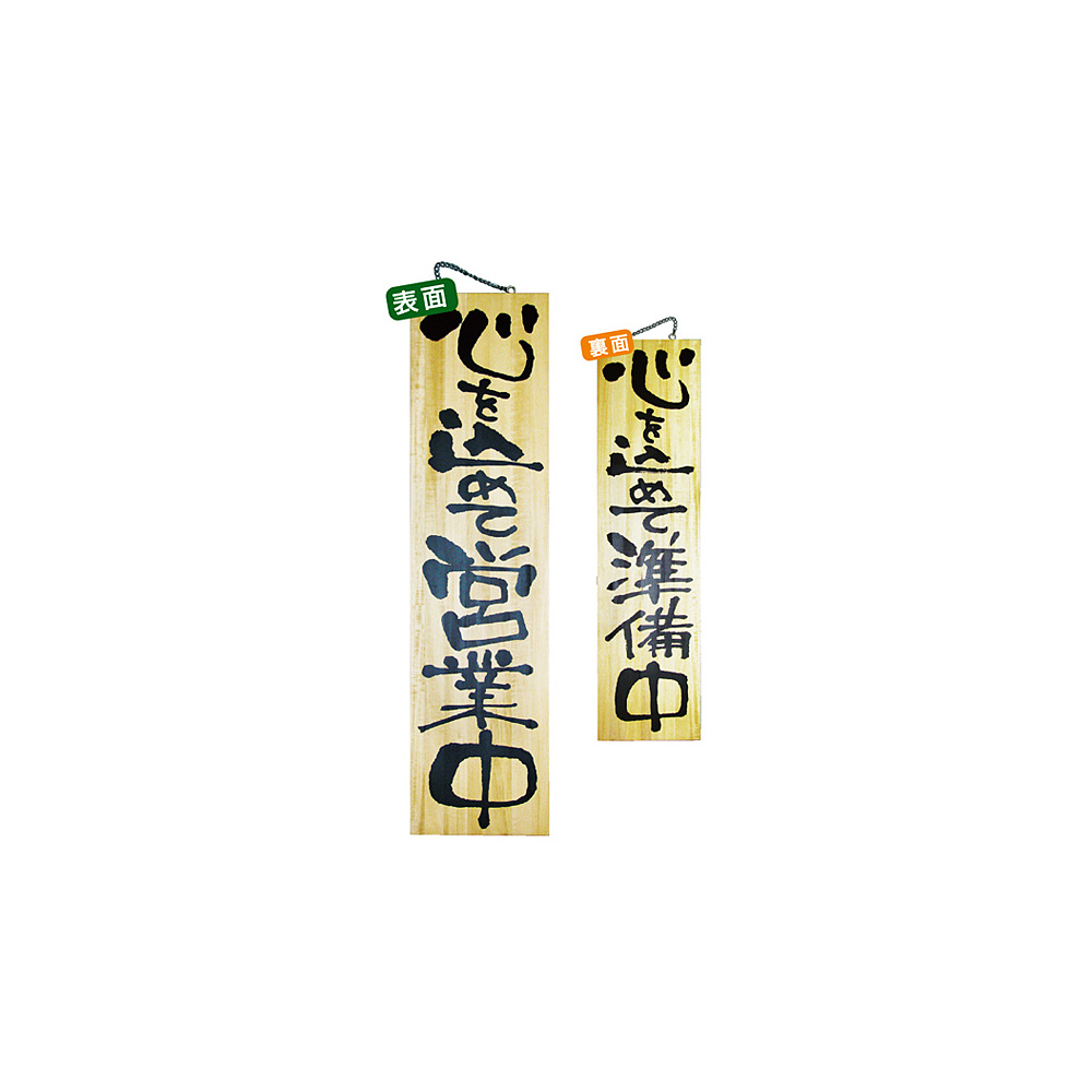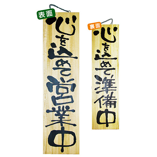 木製サイン (特大) (2615) 心を込めて営業中/心を込めて準備中
