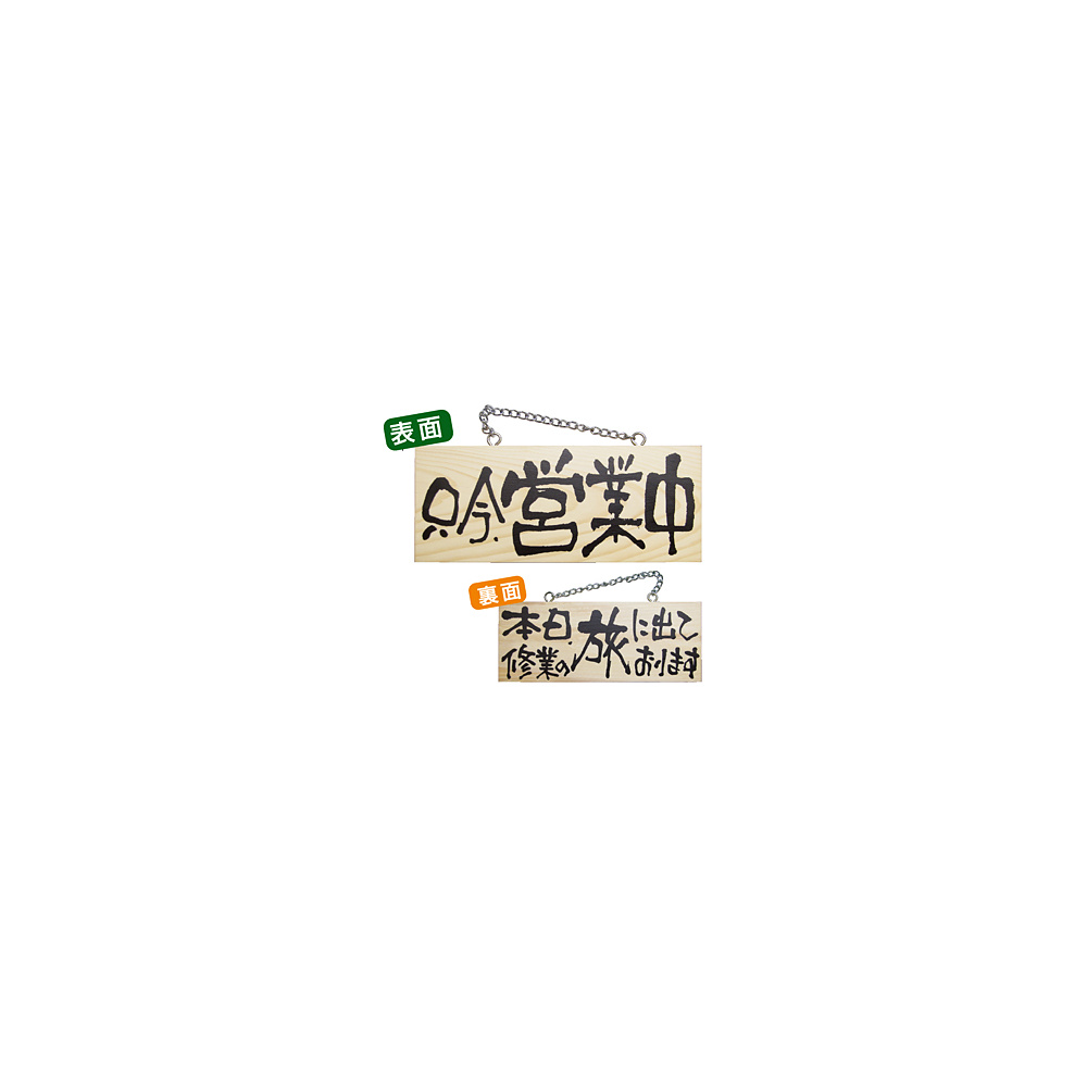 木製サイン (小横) (2597) 只今営業中/本日修業の旅に出て..