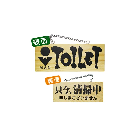木製サイン (小横) (3959) TOILET MAN/只今清掃中