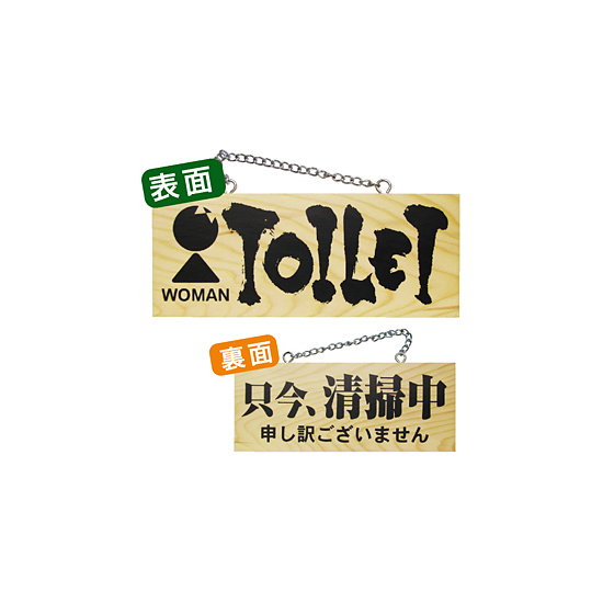 商品説明:木製サイン (小横) (3960) TOILET WOMAN/只今清掃中