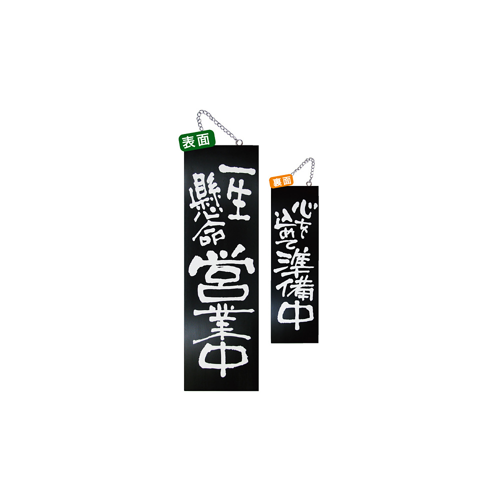ブラック木製サイン (大) (3961) 一生懸命営業中/心を込めて準備中