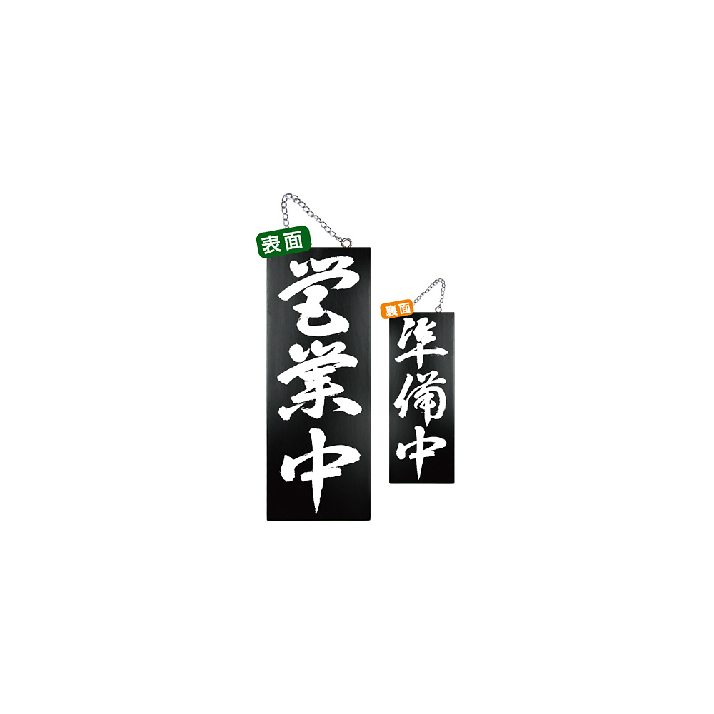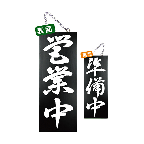 ブラック木製サイン (中) (7639) 営業中 3/準備中