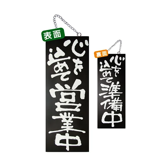 ブラック木製サイン (中) (3970) 心を込めて営業中/心を込めて準備中 の商品詳細