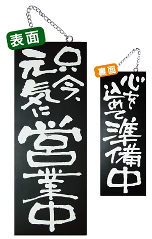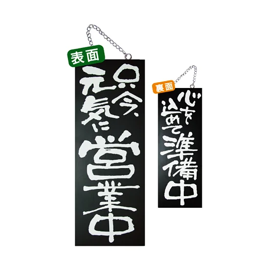 ブラック木製サイン (中) (3971) 只今元気に営業中/心を込めて準備中 の商品詳細