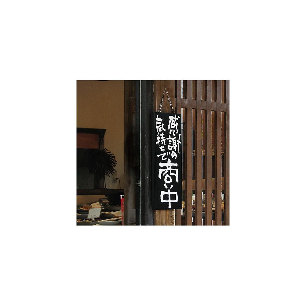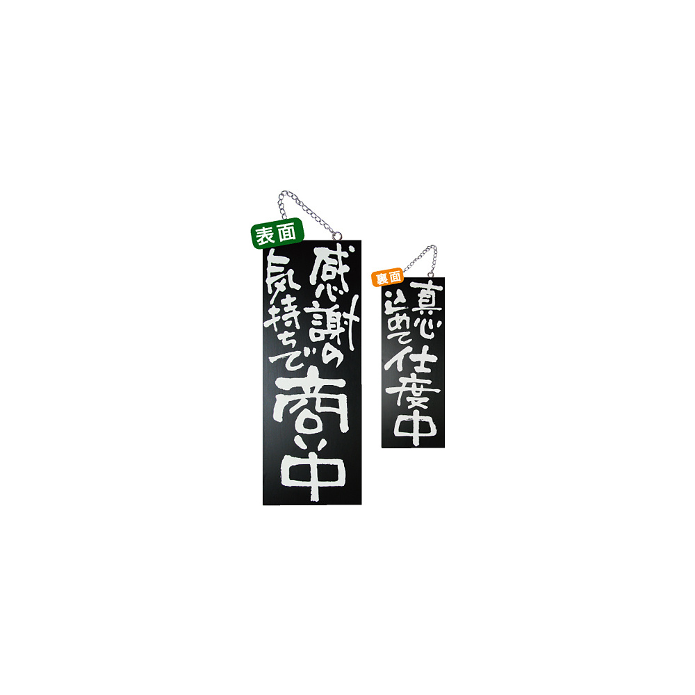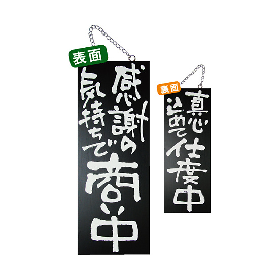 ブラック木製サイン (中) (3974) 感謝の気持ちで商い中/真心込めて仕度中