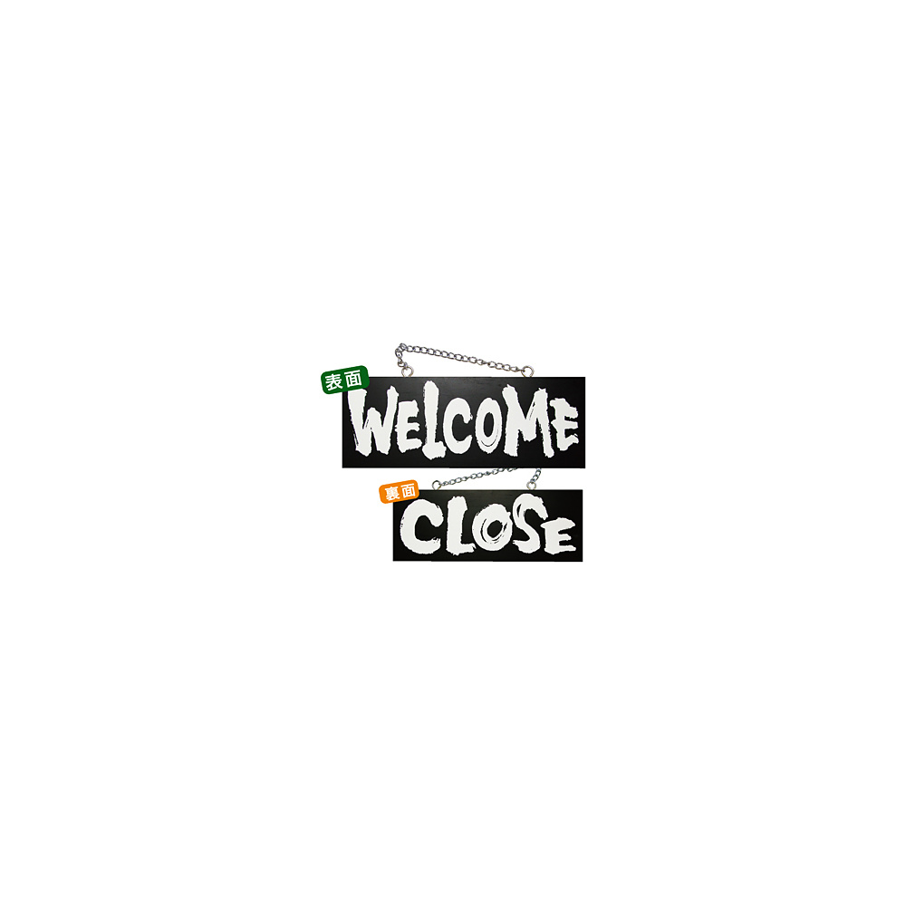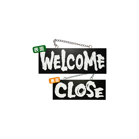 ブラック木製サイン (中横) (3981) WELCOME/CLOSE