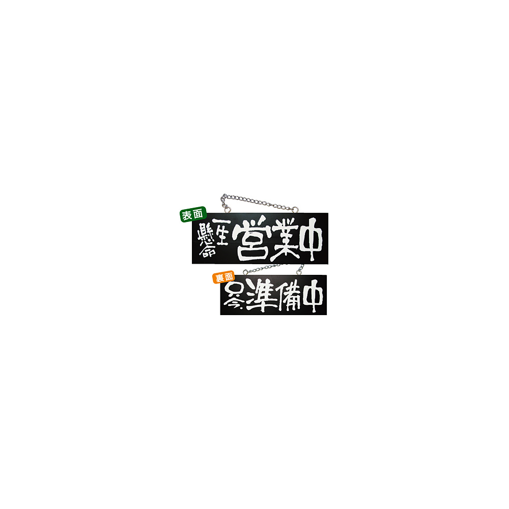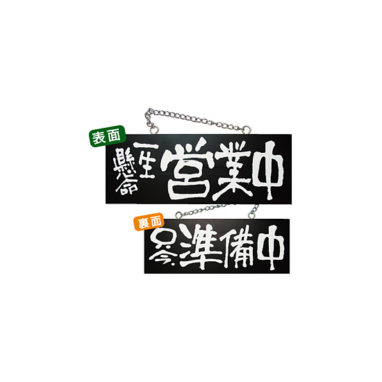 ブラック木製サイン (中横) (3982) 一生懸命営業中/只今準備中