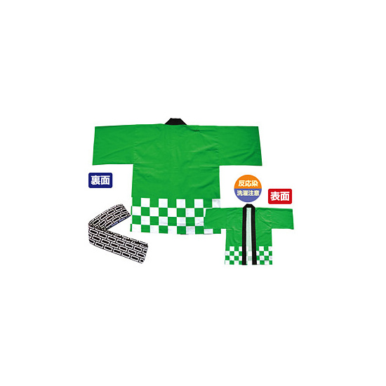 商品説明:カラー市松ハッピ (5126) 緑 (襟は無地)