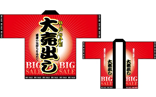 「フルカラーハッピ 1541 大売り出し 赤 (受注生産)」の導入をご検討中ですか? 大量注文・複数台のご検討に応じたお見積りのご相談、最短納期や送料、仕様・サイズの確認など、 半被(はっぴ)選びをまとめてサポートいたします。
