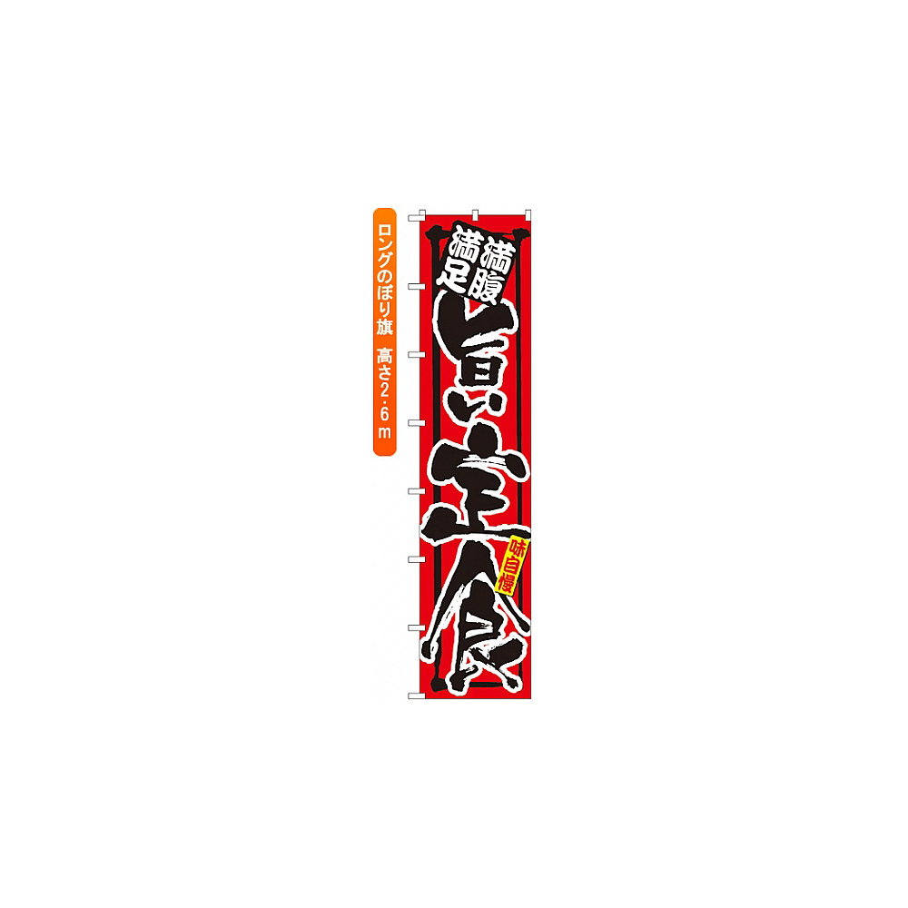 商品説明:ロングのぼり旗 (4045) 満腹満足 旨い定食