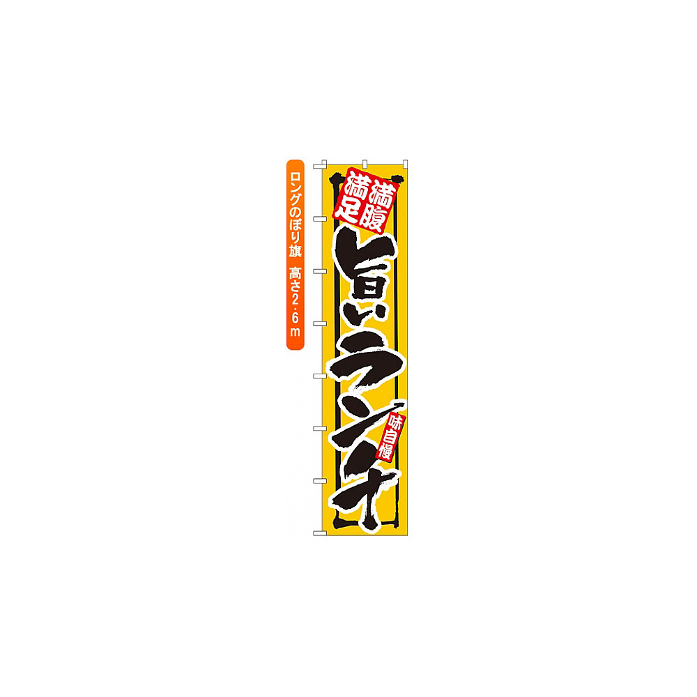 - ロングのぼり旗 (4048) 満腹満足 旨いランチ 黄
