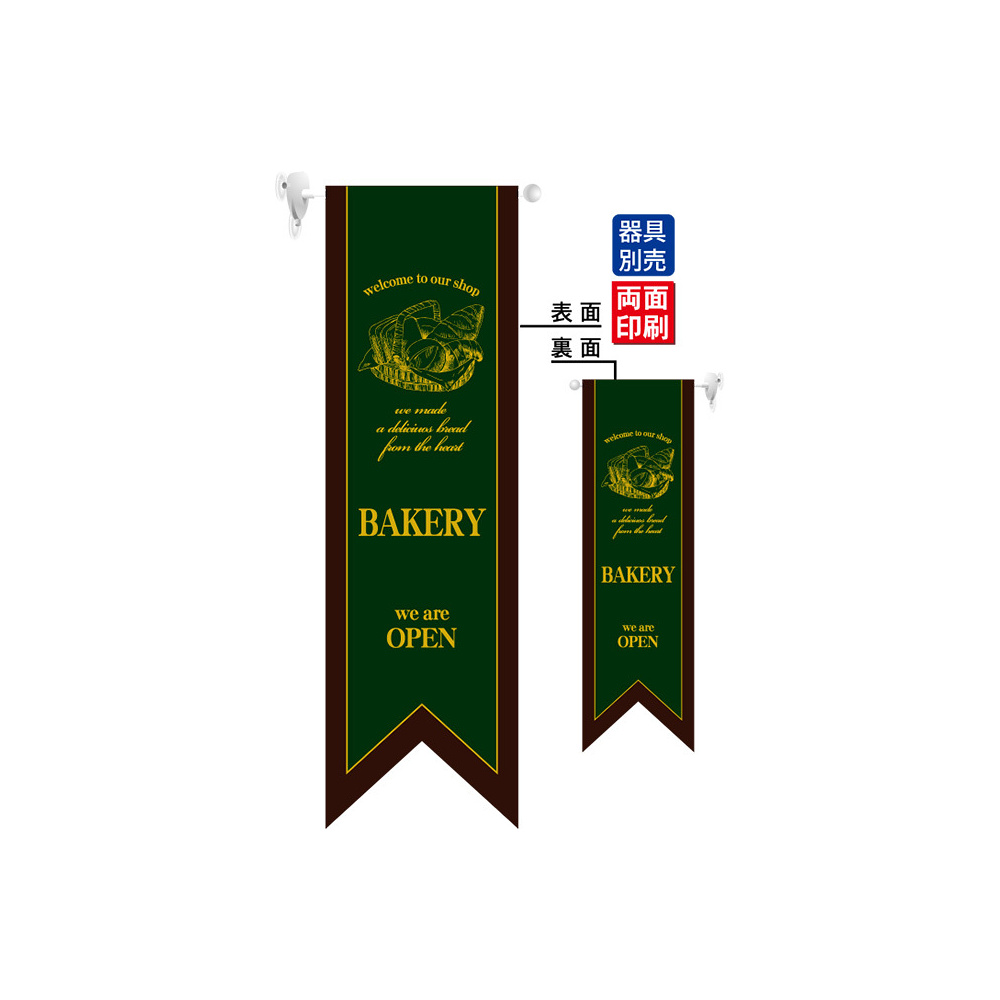 商品説明:BAKERY (濃緑) フラッグ(遮光・両面印刷) (6093)