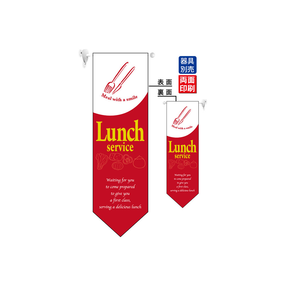 商品説明:Lunch service (赤) フラッグ(遮光・両面印刷) (6099)