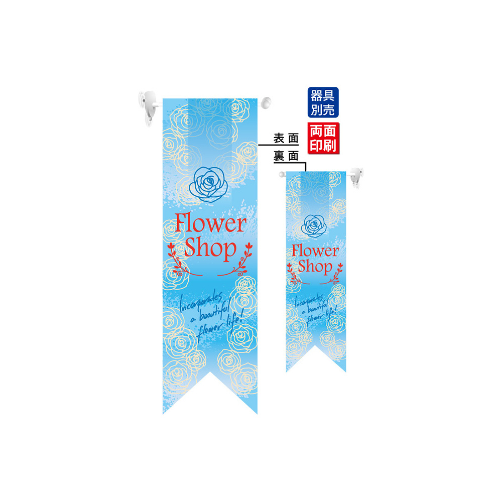 商品説明:Flower Shop (水色) フラッグ(遮光・両面印刷) (6073)