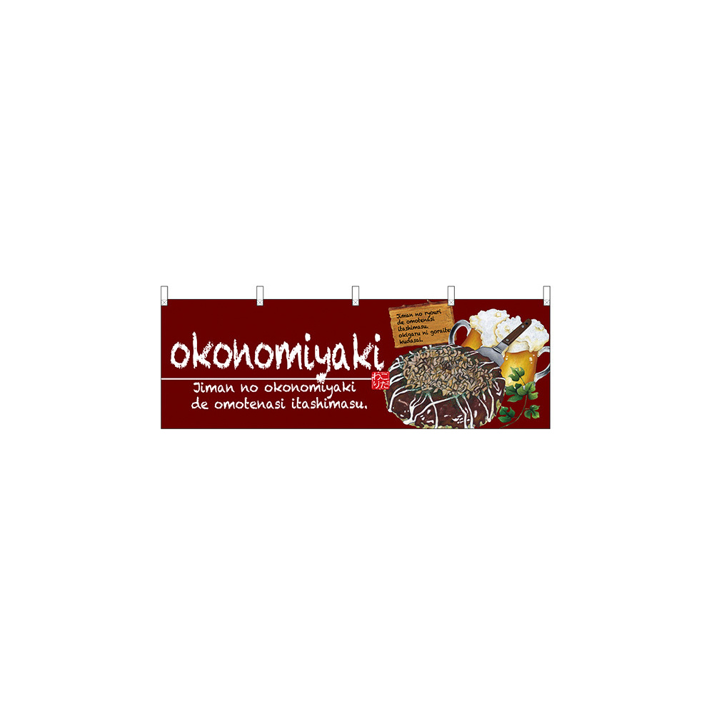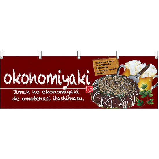 okonomiyaki(お好み焼) ワインレッド 屋台のれん(販促横幕) W1800×H600mm (67524)