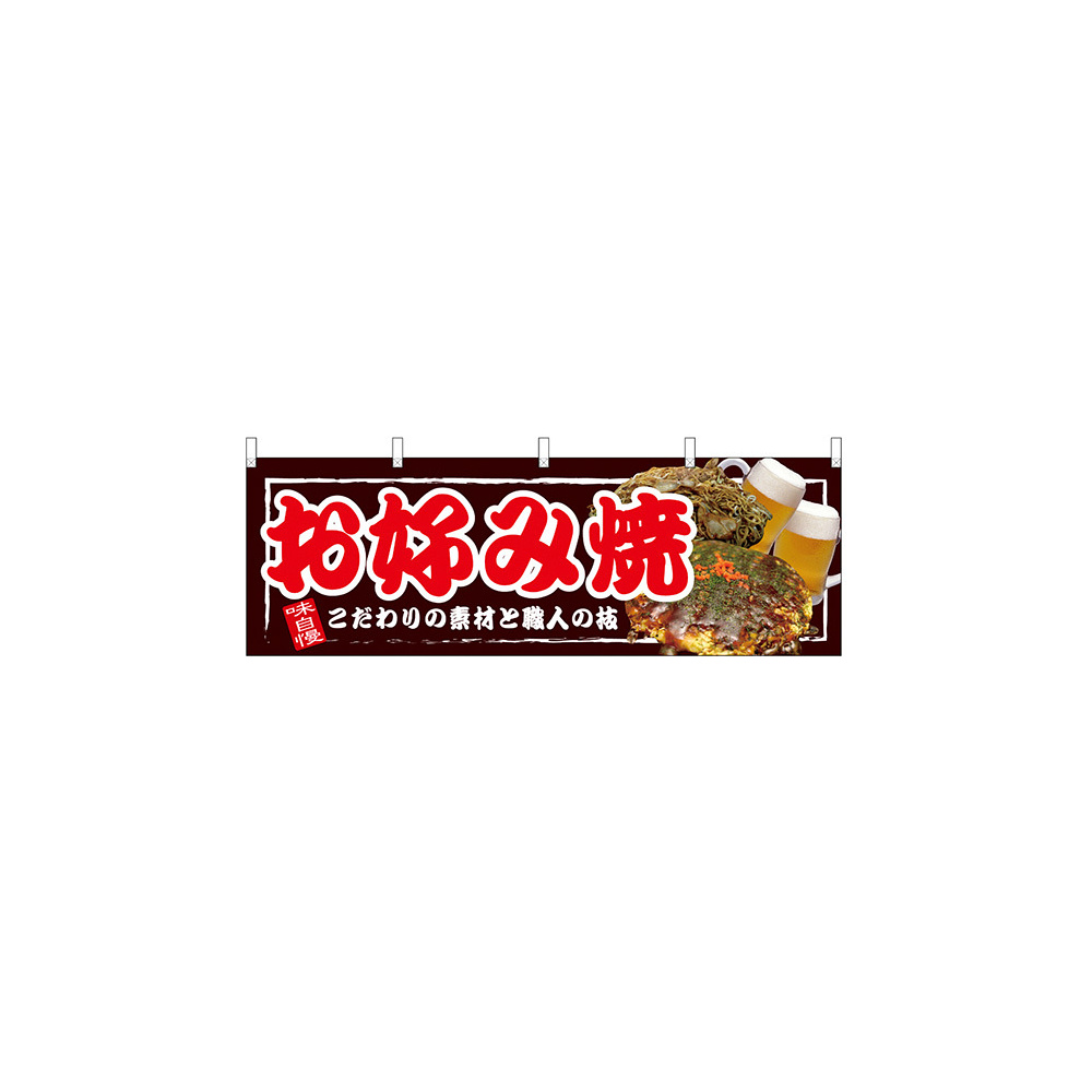 お好み焼 こだわりの素材と職人の技 屋台のれん(販促横幕) W1800×H600mm (67519)