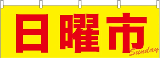 「日曜市 販促横幕 W1800×H600mm (61442)」の導入をご検討中ですか? 大量注文・複数台のご検討に応じたお見積りのご相談、最短納期や送料、仕様・サイズの確認など、 各種催事・イベント向け横断幕選びをまとめてサポートいたします。
