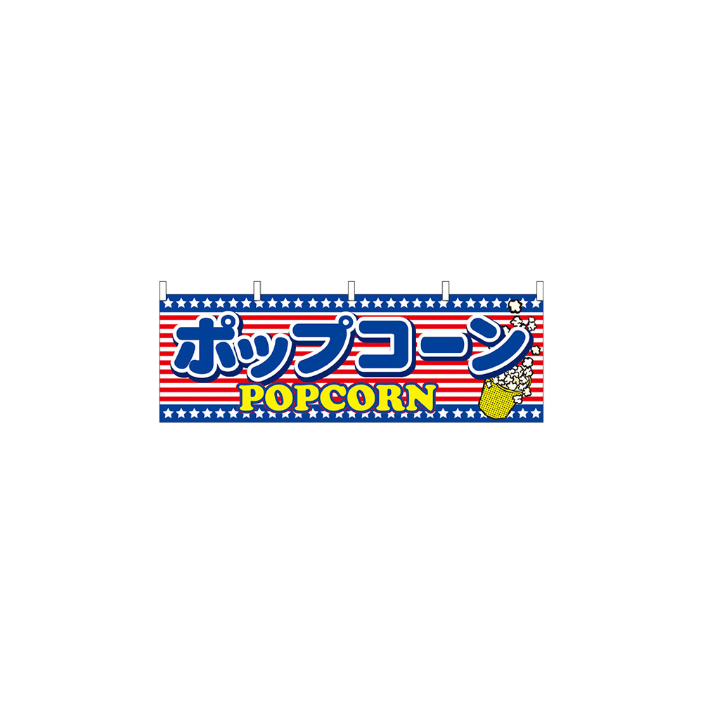ポップコーン アメリカ柄 屋台のれん(販促横幕) W1800×H600mm (61388)