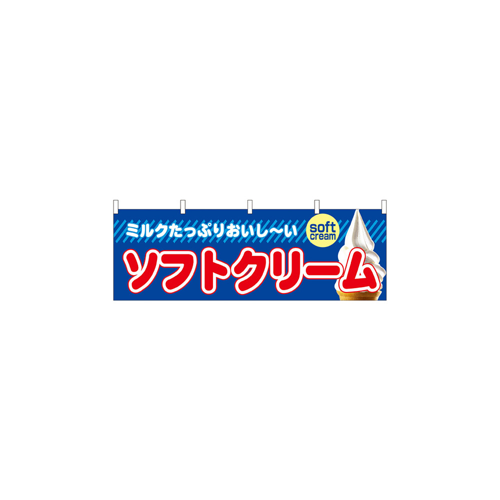 商品説明:ソフトクリーム 屋台のれん(販促横幕) W1800×H600mm (61385)
