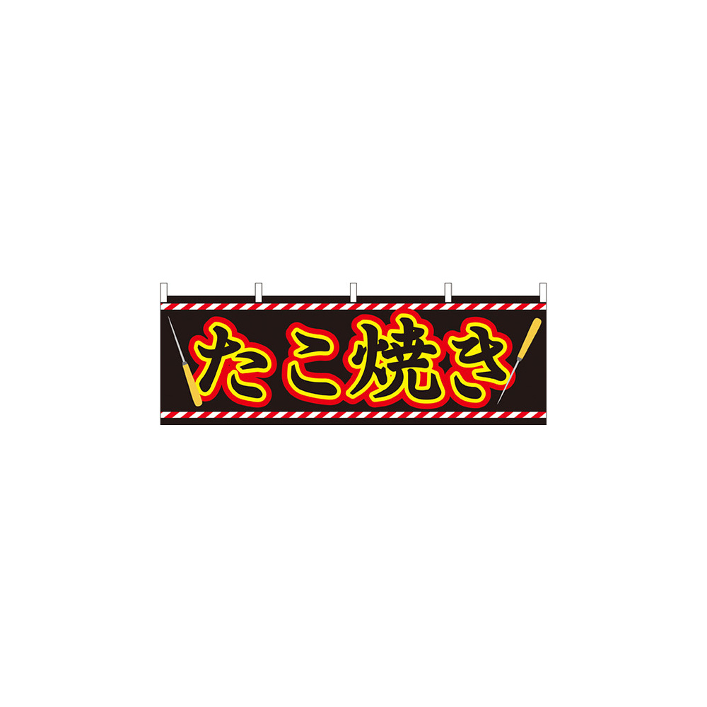 商品説明:たこ焼き 屋台のれん(販促横幕) W1800×H600mm (61313)