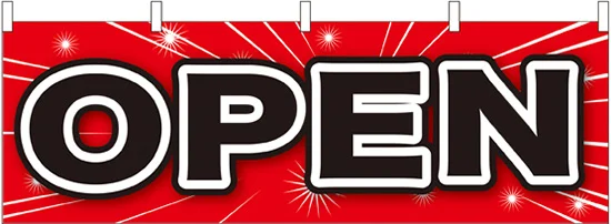 ■デザイン内容:OPEN(赤地) 横幕 - ■サイズ:(1枚) W1800×H600mm