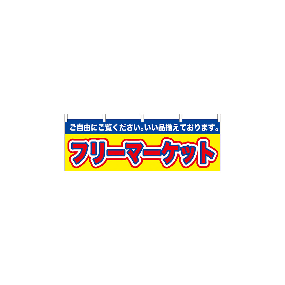商品説明:フリーマーケット 屋台のれん(販促横幕) W1800×H600mm (61434)