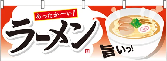 ラーメン 屋台のれん 右にイラスト(販促横幕) W1800×H600mm (61342) の商品詳細