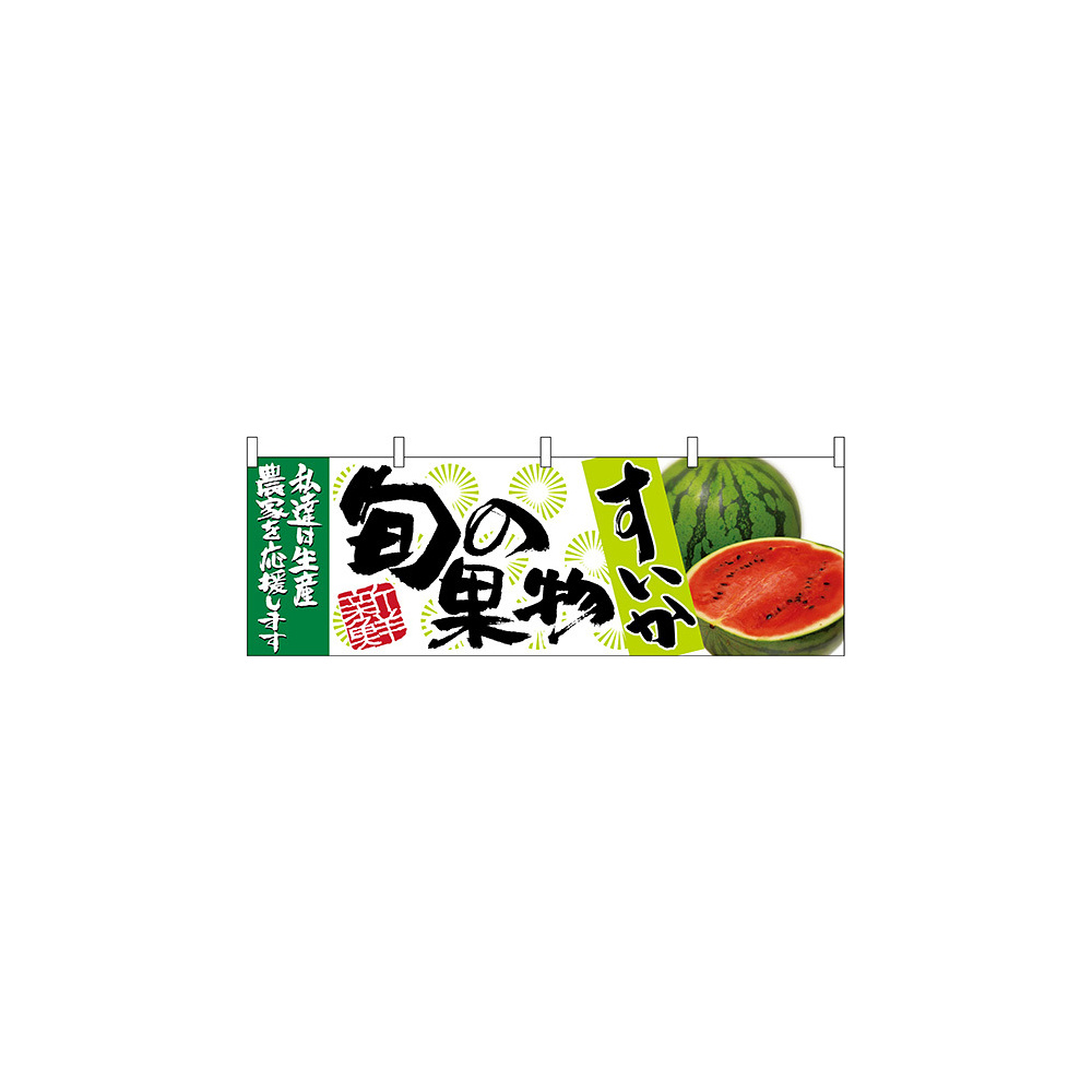 「すいか旬の果物 販促横幕 W1800×H600mm (63020)」の導入をご検討中ですか? 大量注文・複数台のご検討に応じたお見積りのご相談、最短納期や送料、仕様・サイズの確認など、 果物・野菜コーナー用横断幕選びをまとめてサポートいたします。