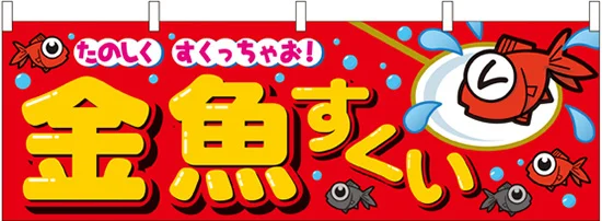 金魚すくい 屋台のれん 赤(販促横幕) W1800×H600mm (61397)