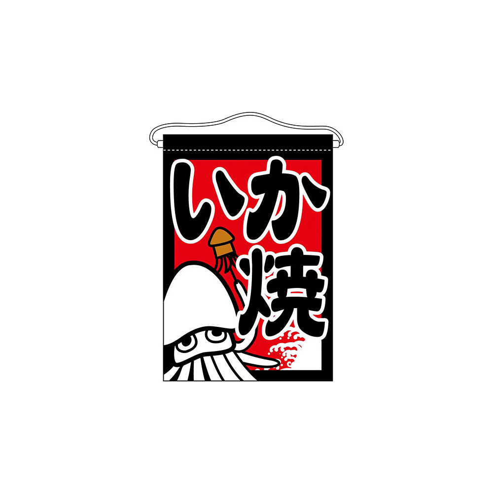 商品説明:いか焼 黒地 吊り下げ旗(63053)