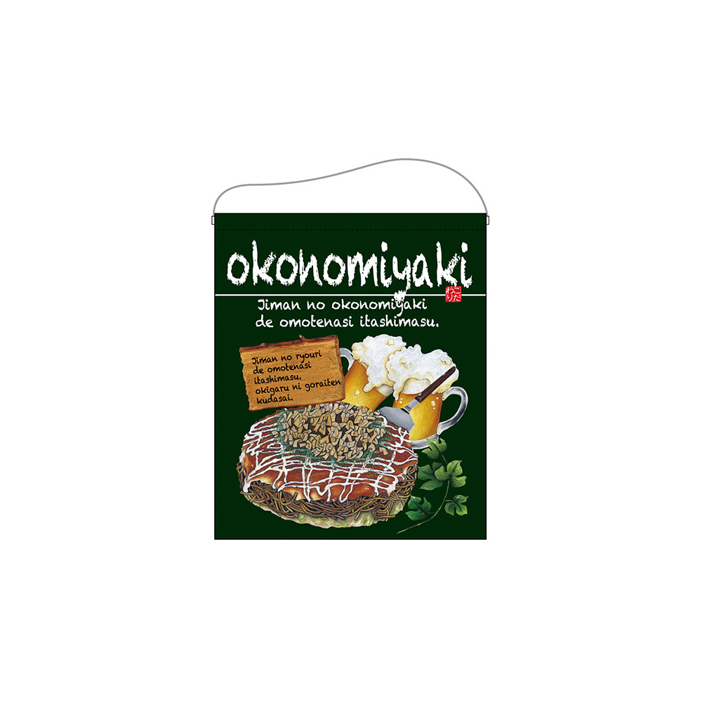 商品説明:okonomiyaki(お好み焼) モスグリーン 大サイズ吊り下げ旗(67537)