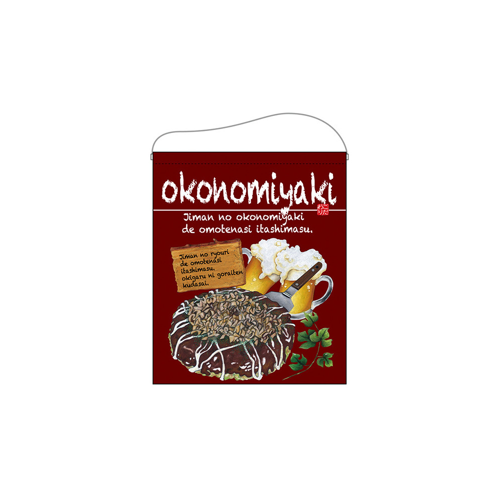 商品説明:okonomiyaki(お好み焼) ワインレッド 大サイズ吊り下げ旗(67538)