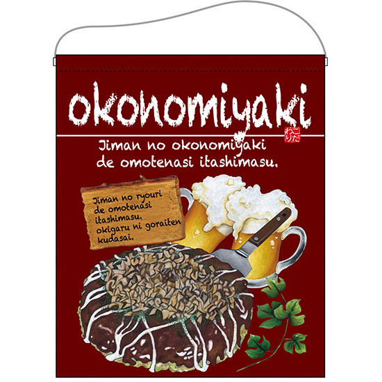 okonomiyaki(お好み焼) ワインレッド 大サイズ吊り下げ旗(67538)