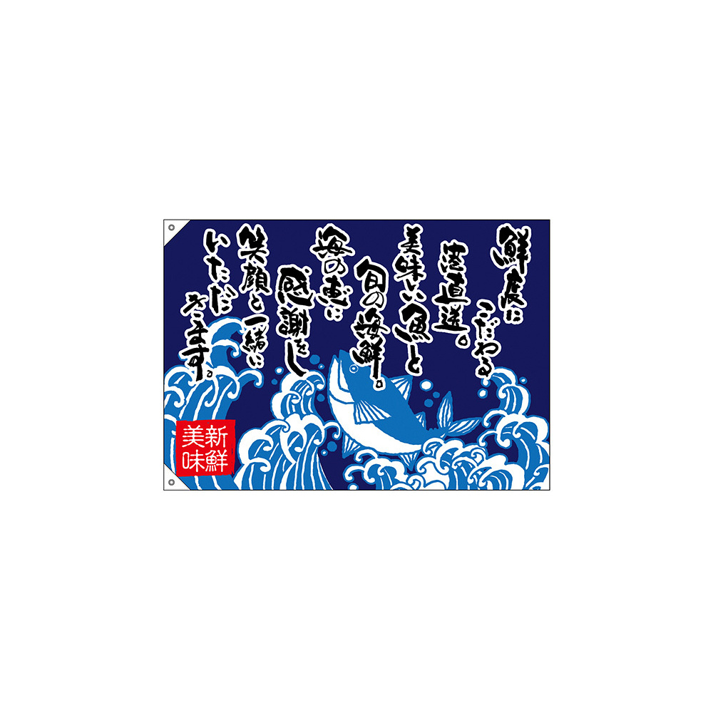 商品説明:大漁旗 鮮度にこだわる港直送 幅1m×高さ70cm ポンジ製 (68495)