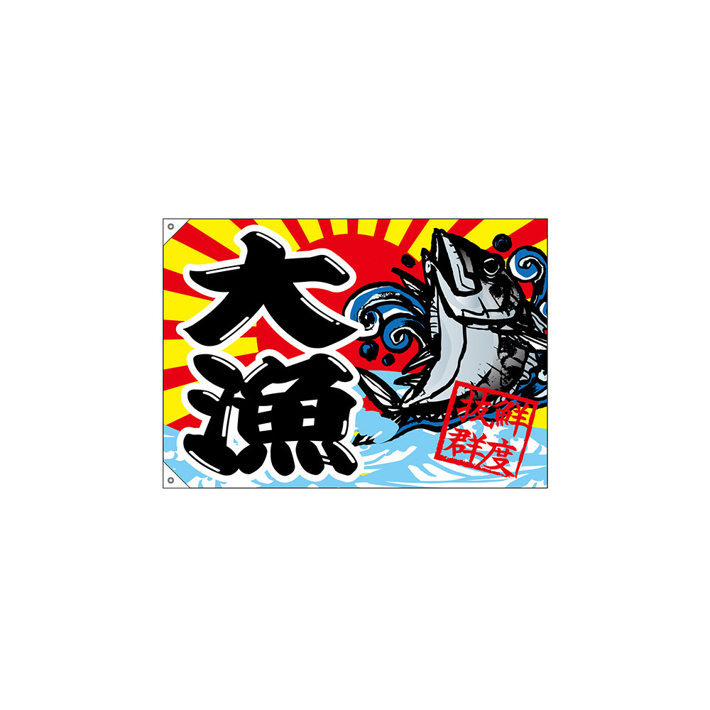 大漁旗 大漁 鮮度抜群 幅1m×高さ70cm ポリエステル製 (68477)