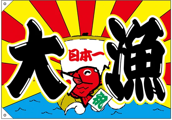 縁起の良い大漁旗は、お店のインテリアとしても注目度バツグン!デザイン内容「大漁旗 大漁 日本一」