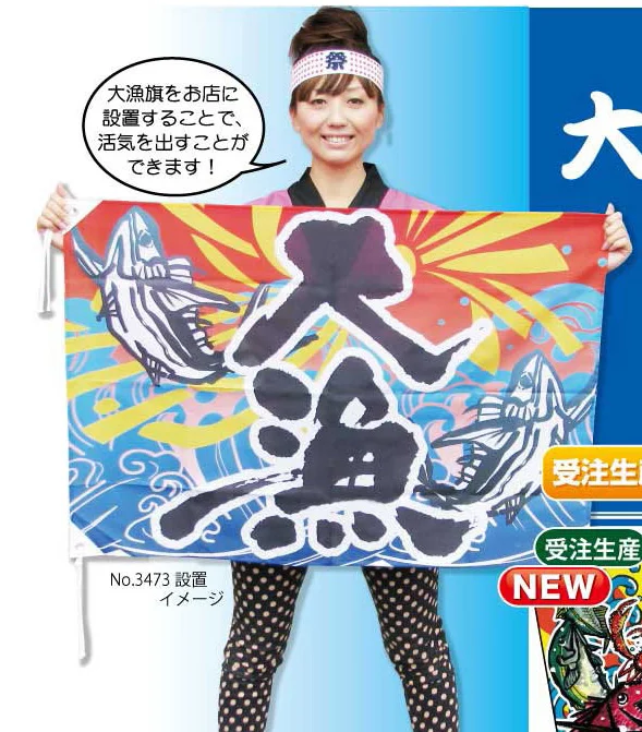 - 縁起の良い大漁旗を飾ることで商売繁盛を祈念しましょう!