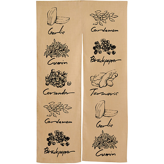 商品説明:香辛料柄 エステル麻のれん (3585)
